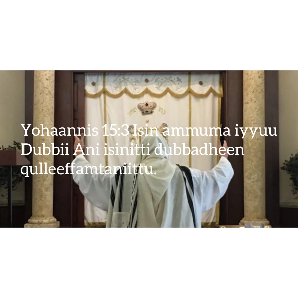 - Yohaannis[John][ዮሐንስ][Yooxanaa] 15:3 Isin ammuma iyyuu dubbii Ani isinitti dubbadheen qulleeffamtaniittu.